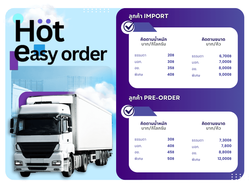 shippingนำเข้าสินค้าจีน บริการนำเข้าสินค้าจีนมาไทยแบบมืออาชีพ เคลียร์ภาษีถูกต้อง ส่งถึงหน้าบ้าน ให้บริการ Shipping นำเข้าสินค้าจากจีนแบบครบวงจร ทั้งระบบนำเข้าสินค้า Import และระบบลูกค้าฝากสั่ง Pre-order เหมาะสำหรับผู้ค้าออนไลน์ ร้านค้าส่ง และผู้ที่ต้องการขยายธุรกิจด้วยสินค้าจากจีน ไม่มีขั้นต่ำในการขนส่ง 1 ชิ้นก็สั่งได้ คิดค่าขนส่งตามจริง เช็คสถานะได้ตลอด 24 ชม. Shipping แบบทางรถ – ขนส่งเร็ว ค่าขนส่งประหยัด เหมาะสำหรับสินค้าทั่วไป Shipping ทางเรือ – เหมาะกับสินค้าน้ำหนักมาก ขนาดใหญ่ นำเข้าพร้อมเคลียร์ภาษีถูกต้อง 100% รองรับทั้งสินค้าทั่วไป และสินค้าประเภทพิเศษ (ปรึกษาได้) สามารถรวมสินค้าได้จากหลายร้าน มีโกดังจีน-ไทย พร้อมระบบติดตามสถานะ